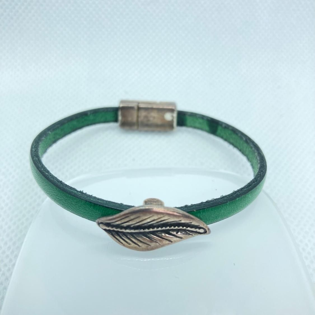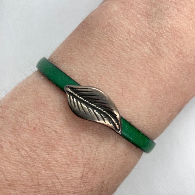 Bracelet avec cordon cuir vert 5mm.